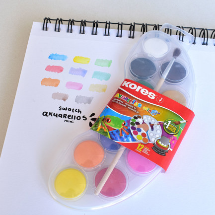 SET DE ACUARELAS MINI KORES 12 PASTILLAS CON PINCEL
