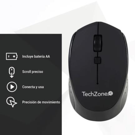 Mouse Inalambrico TechZone Optico 800 a 1600dpi Ajustable 3 Botones Ambidiestro Win/MAC Color Negro
